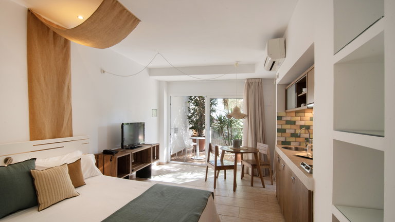 Dieses moderne und funktionale Studio-Apartment ist perfekt für zwei Personen (ein Kinderbett ist auf Anfrage erhältlich).