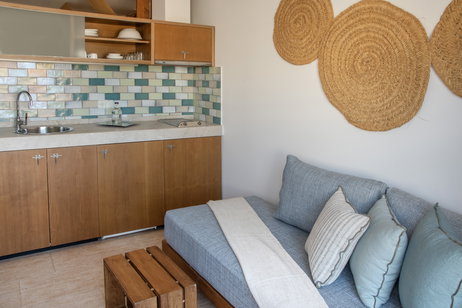 Die Küche ist komplett ausgestattet mit Herd, Kühlschrank, Mikrowelle, italienischer Kaffeemaschine und allen notwendigen Küchenutensilien. Das Badezimmer verfügt über eine Dusche und das Studio hat einen privaten, möblierten Balkon mit Wäscheleine. Der Reinigungsservice erfolgt täglich und umfasst den Wechsel der Bettwäsche und Strandtücher. Einige Studios bieten auch Blick auf den Pool.