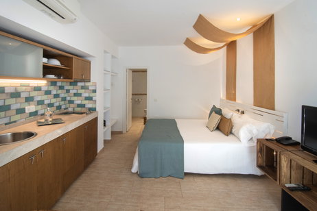 Dieses moderne und minimalistische Studio wurde entworfen, um Ihnen einen komfortablen und funktionalen Aufenthalt zu bieten. Ideal für ein oder zwei Personen (ein Kinderbett ist auf Anfrage erhältlich). Sie haben die Wahl zwischen einem Doppelbett oder zwei Einzelbetten. Klimatisiert mit Klimaanlage. Die Küche ist komplett ausgestattet mit Herd, Kühlschrank, Mikrowelle, italienischer Kaffeemaschine und allen notwendigen Küchenutensilien. Badezimmer mit Dusche, Safe, Flachbildfernseher mit Satellitenkanälen, Terrasse mit Möbeln und praktischer Wäscheleine.