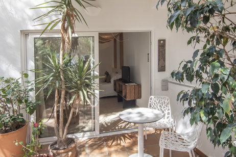 Der Zugang zum Studio erfolgt über einen schönen Anbau des Hotels.