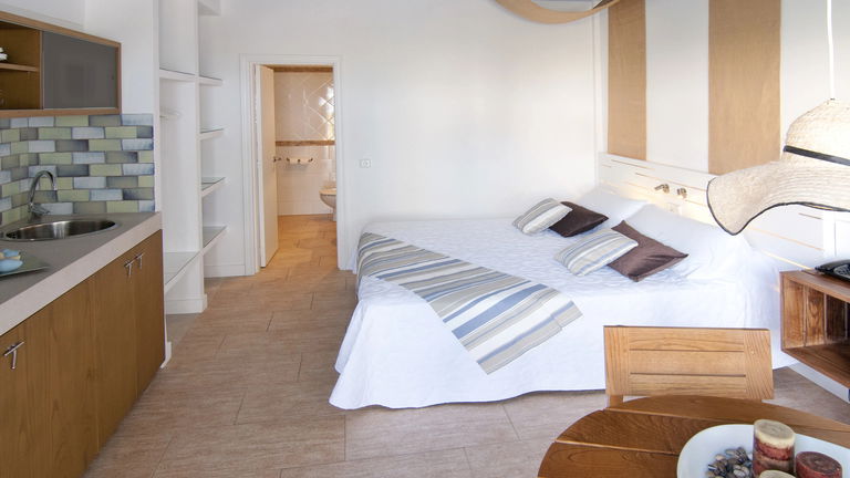 Este estudio de estilo moderno y minimalista ha sido diseñado para ofrecerle una estancia cómoda y funcional. Ideal para una o dos personas (disponemos de cuna si la necesita). Con la posibilidad de elegir entre una cama matrimonial o dos camas individuales. Climatizado con aire acondicionado. La cocina está completamente equipada con placa, nevera, microondas, cafetera italiana y todo el menaje necesario. Baño con ducha, caja fuerte, TV pantalla plana con canales vía satélite, terraza con su mobiliario y práctico tendedero.